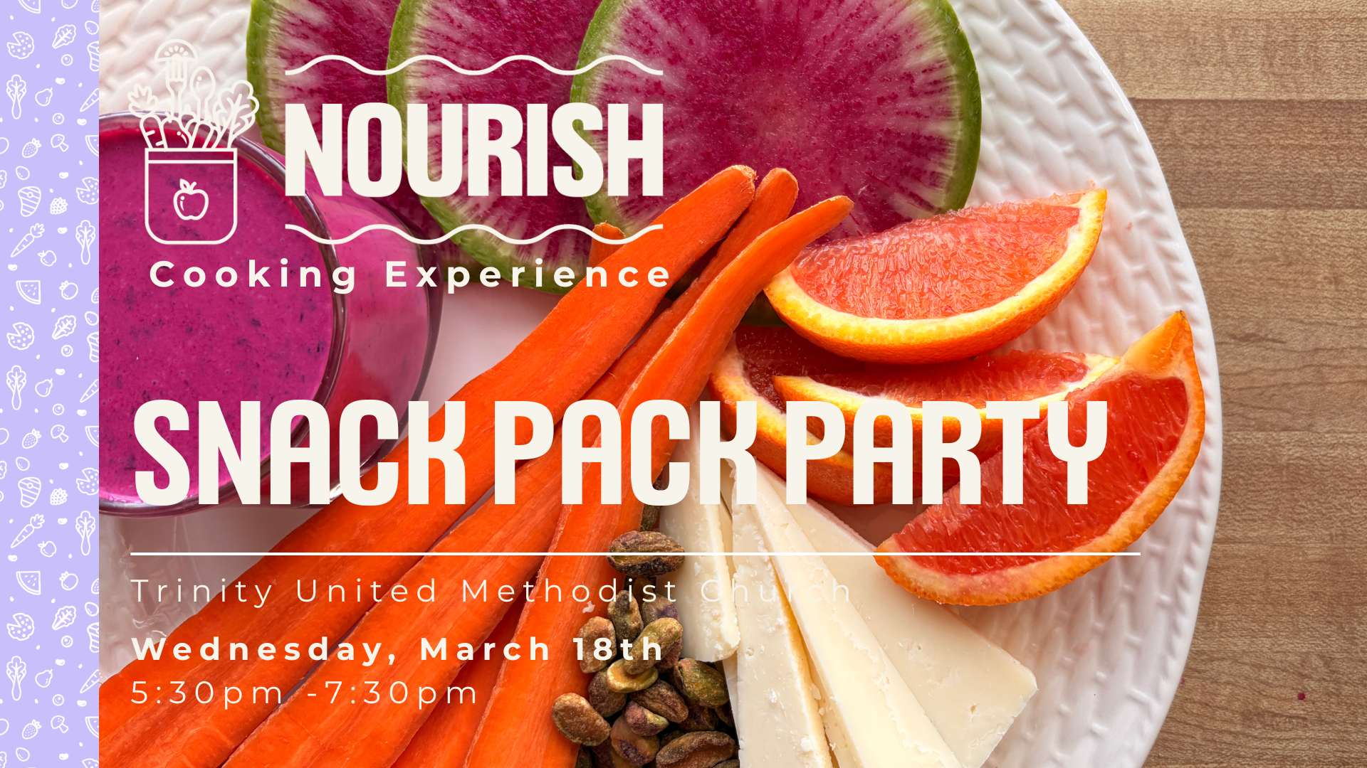 We've got a knack for snacks! Learn about our Nourish program and bundle offerings at "Snack Pack Party." Our team will demonstrate ways to maximize your snackage game through fun, colorful dips and spreads while highlighting common ingredients included in our Snack Pack produce bundle. Each class member will go home with a Snack Pack ($15 value)! Reserve your seat today.